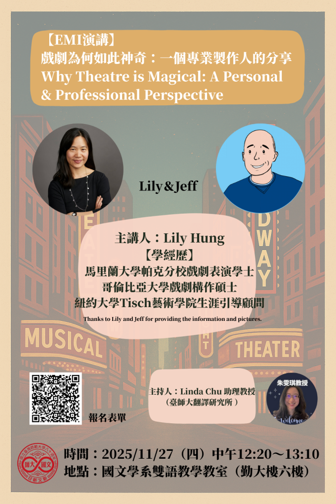 114學年度第1學期臺師大國文學系 EMI專題演講